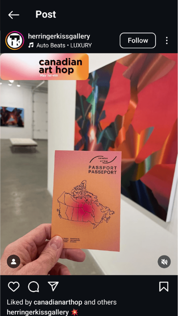 Marketing collateral for the Art Dealer’s Association of Canada’s 2025 edition of the Canadian Art Hop., an event for art galleries and institutions to gain new visitors in a nationwide art walk.