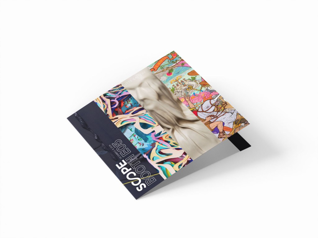 The following marketing collateral for art fairs can be produced within a few days! Visitors to your booth can take home small catalogues or cards with thumbnail images of the artwork on display, information about the gallery, artists pricing, etc. They’re a great tool to make sure clients remember the booth after they’ve left, and are an easy way for visitors to recommend the booth to one another.