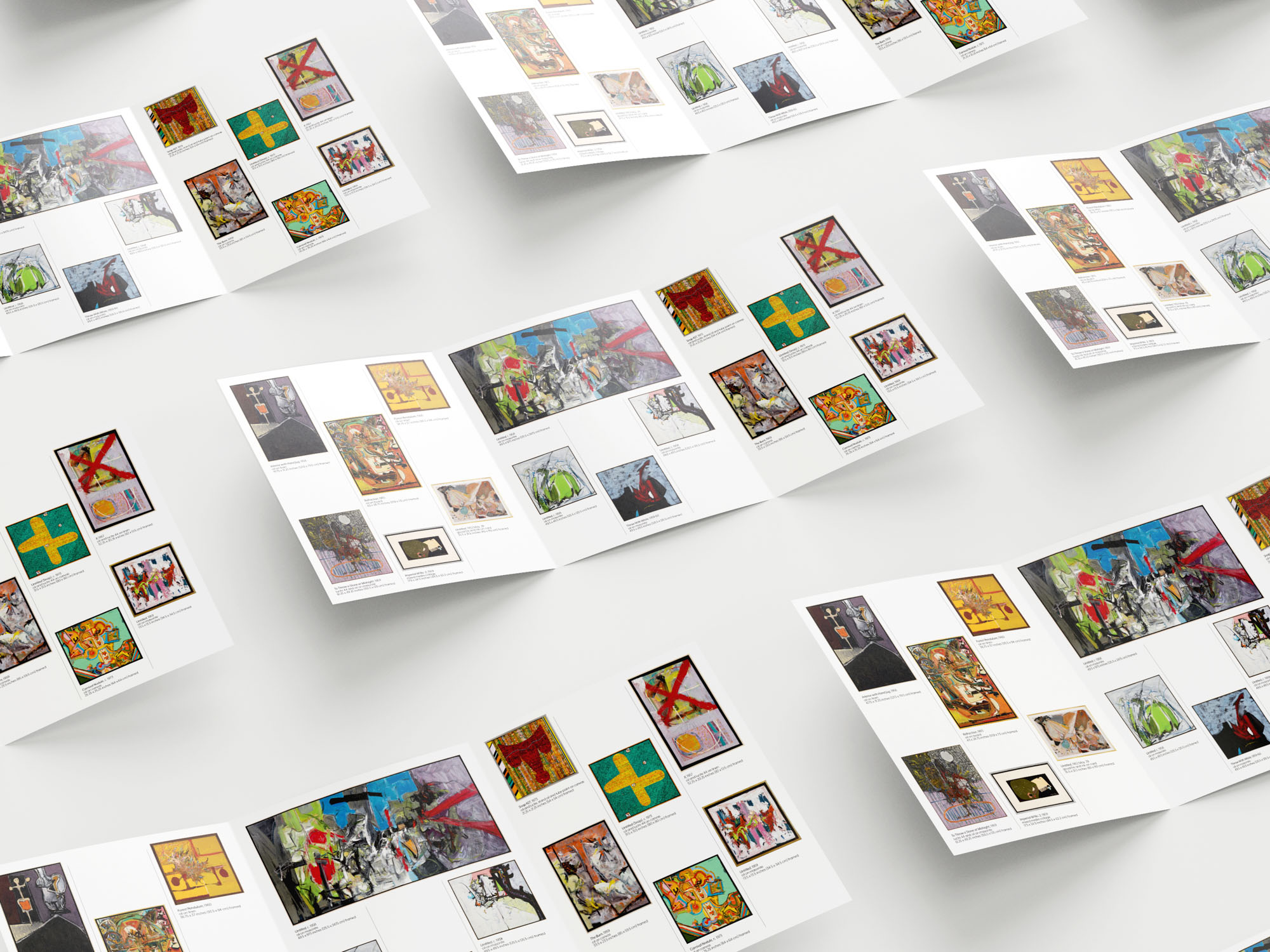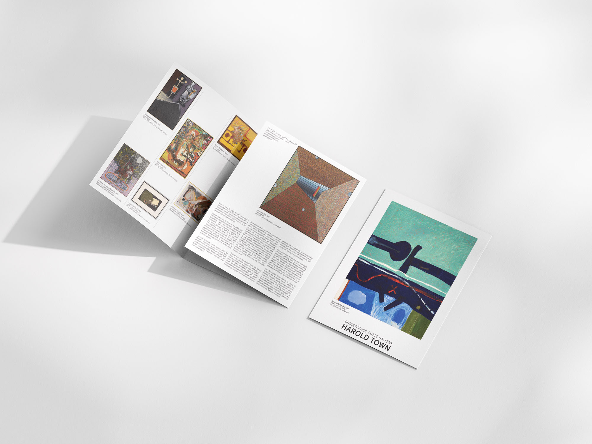This tri-fold card stock brochure is marketing collateral given out to visitors at art fairs or exhibitions. Visitors can take home fold out pamphlets with thumbnail images of the artwork on display, information about the gallery, artists pricing, etc. They’re a great tool to make sure clients remember the gallery after they’ve left, and are an easy way for visitors to recommend the gallery to one another.
